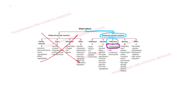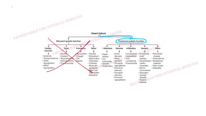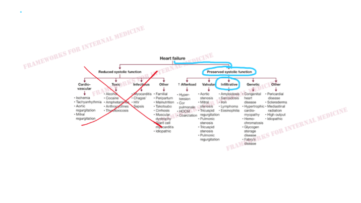 An older man presents with the clinical syndrome of heart failure (weight gain, orthopnea, elevated JVP, etc.)