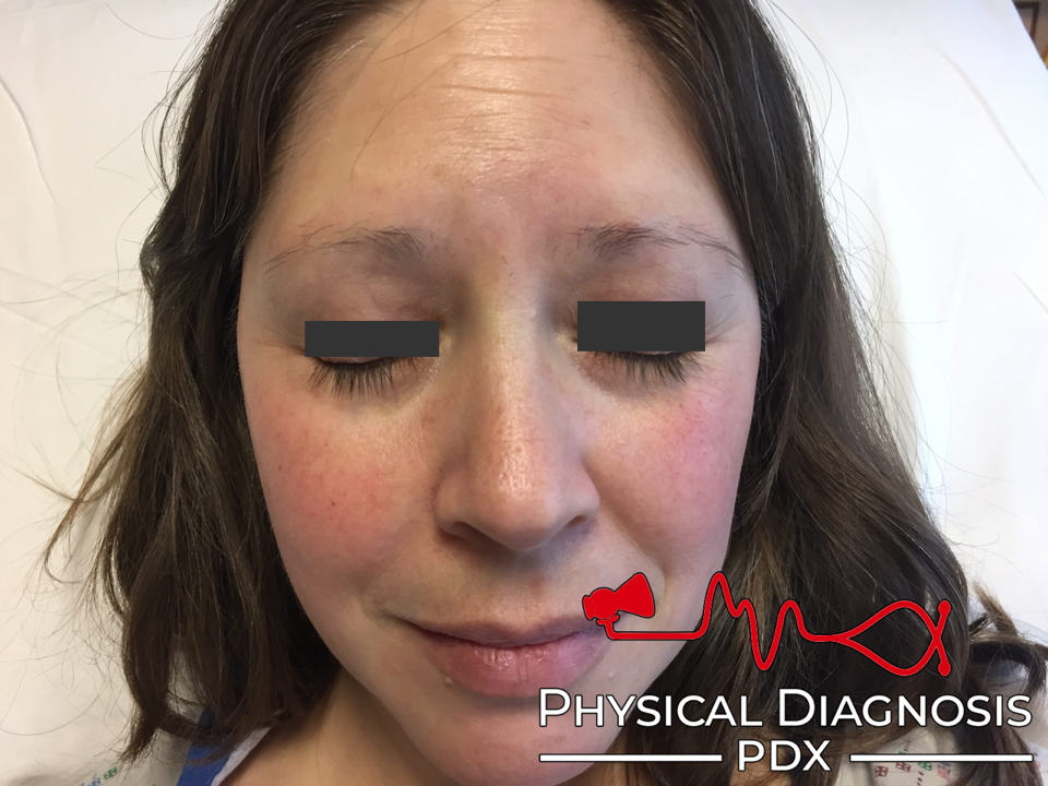 This is a young woman who was admitted to the hospital with delirium following months of weight gain and constipation, and was found to have myxedema coma. Note thinning of the lateral third of the eyebrows.
