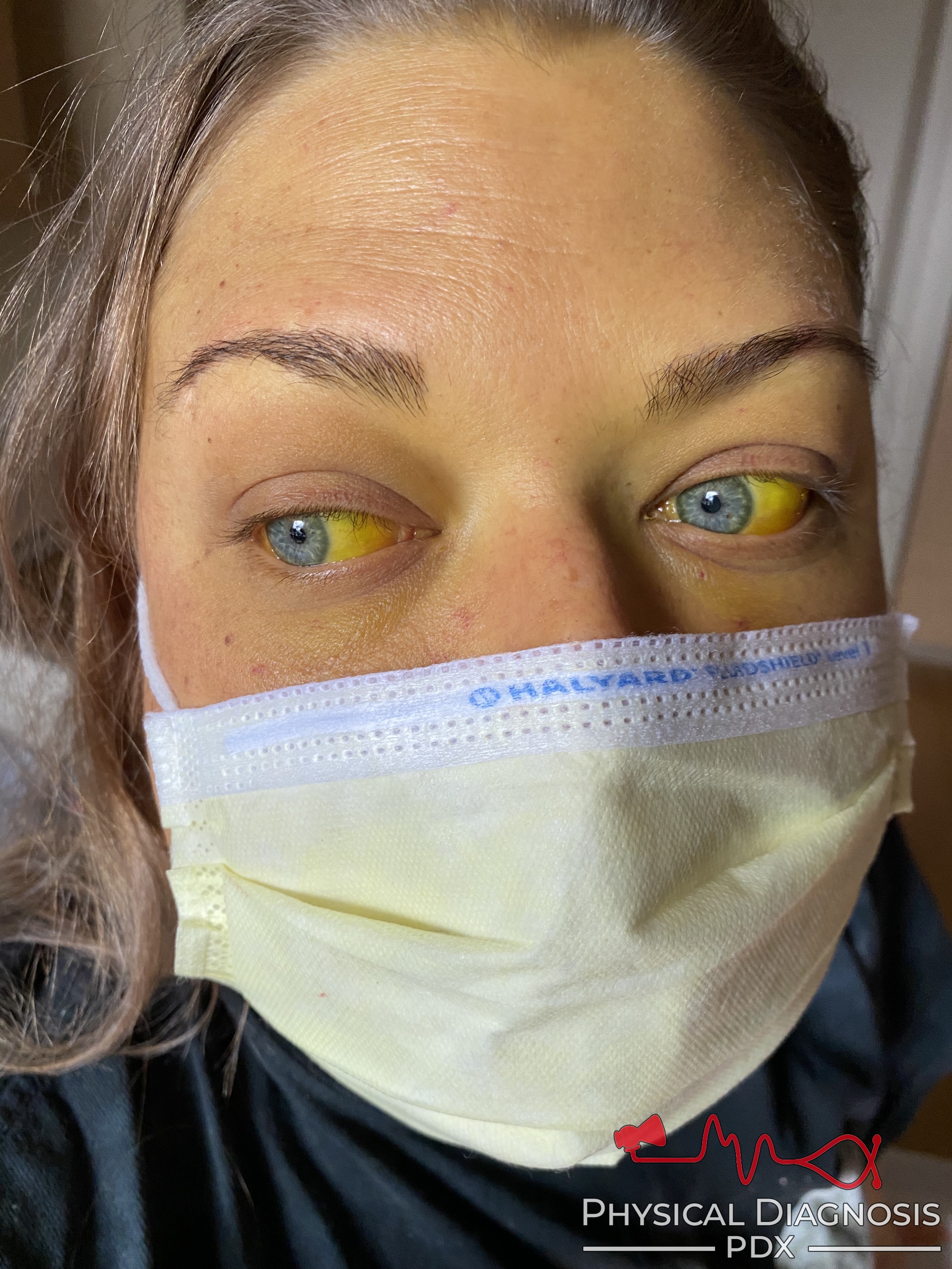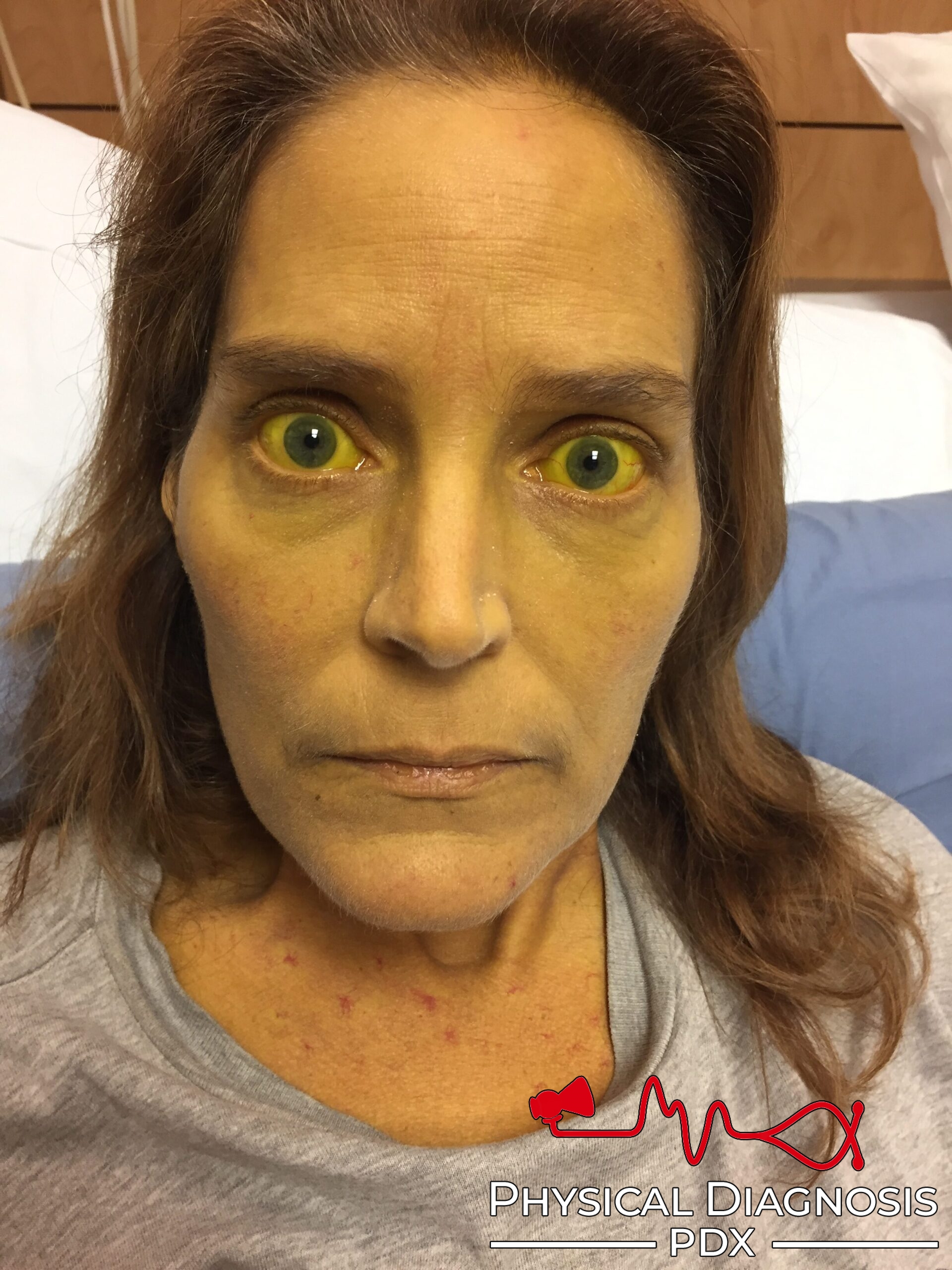 This is a young woman with severe alcoholic hepatitis.