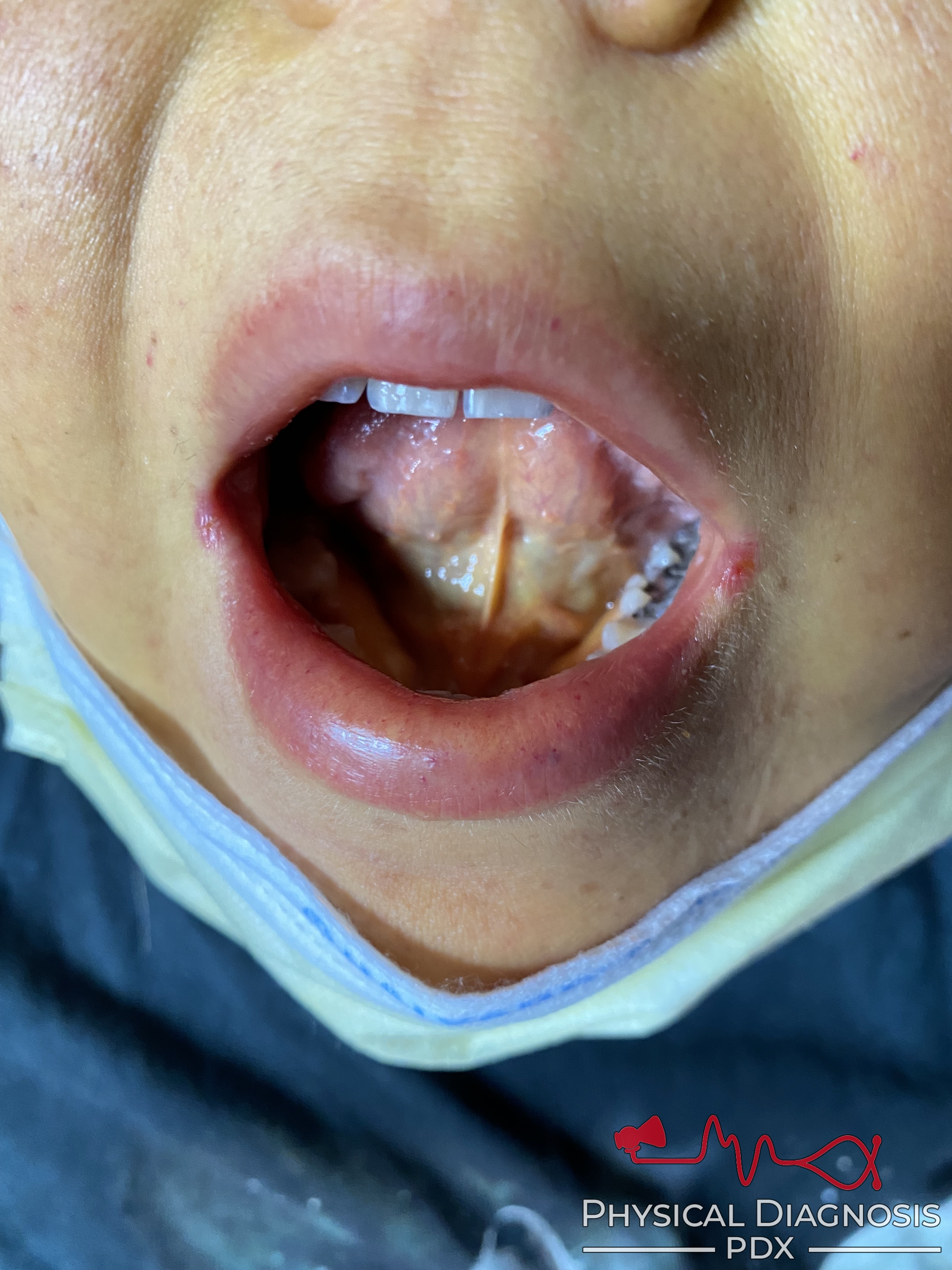 - Can be seen early under the tongue.