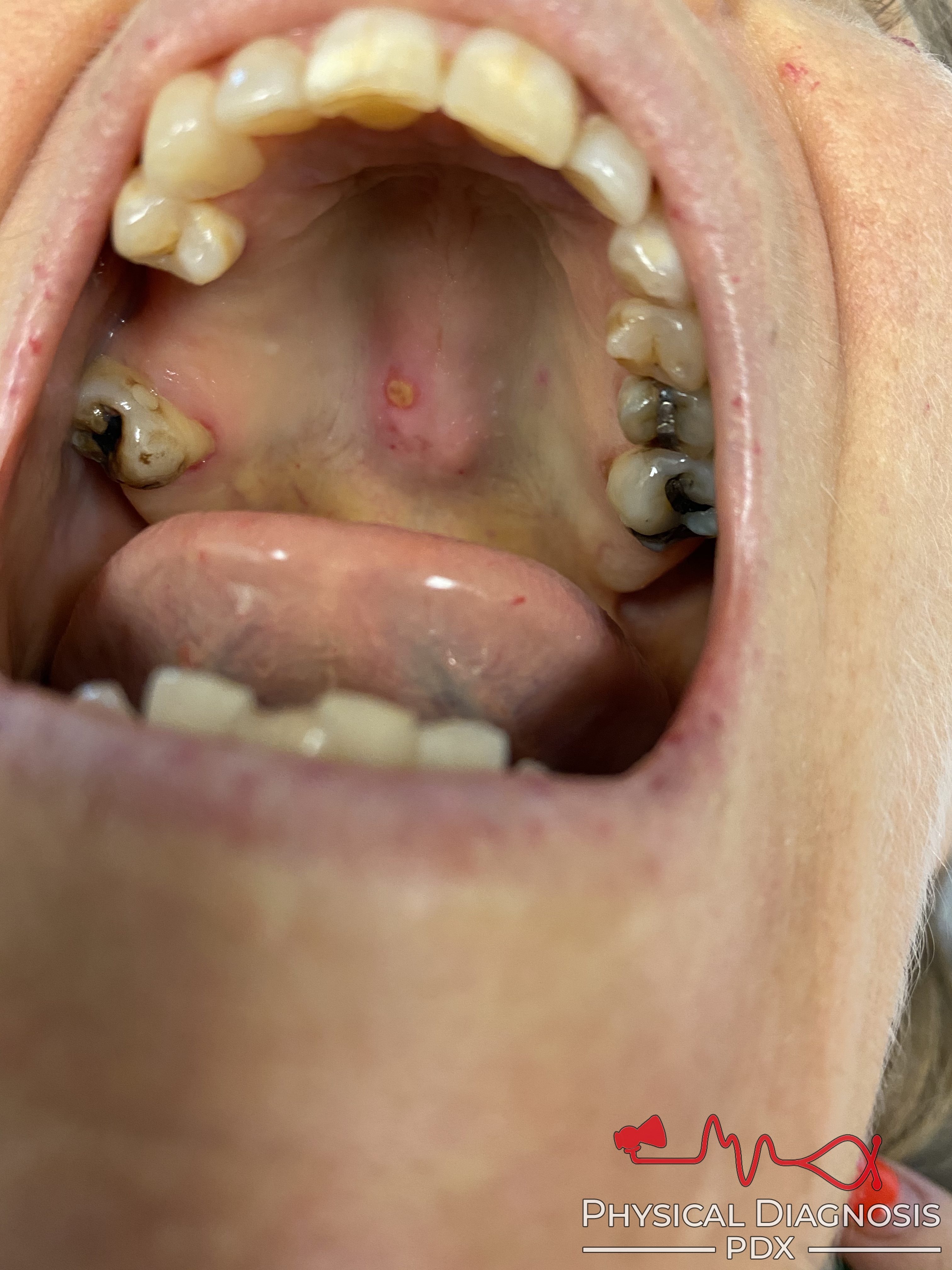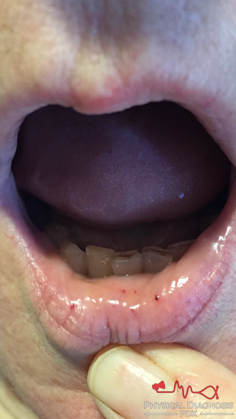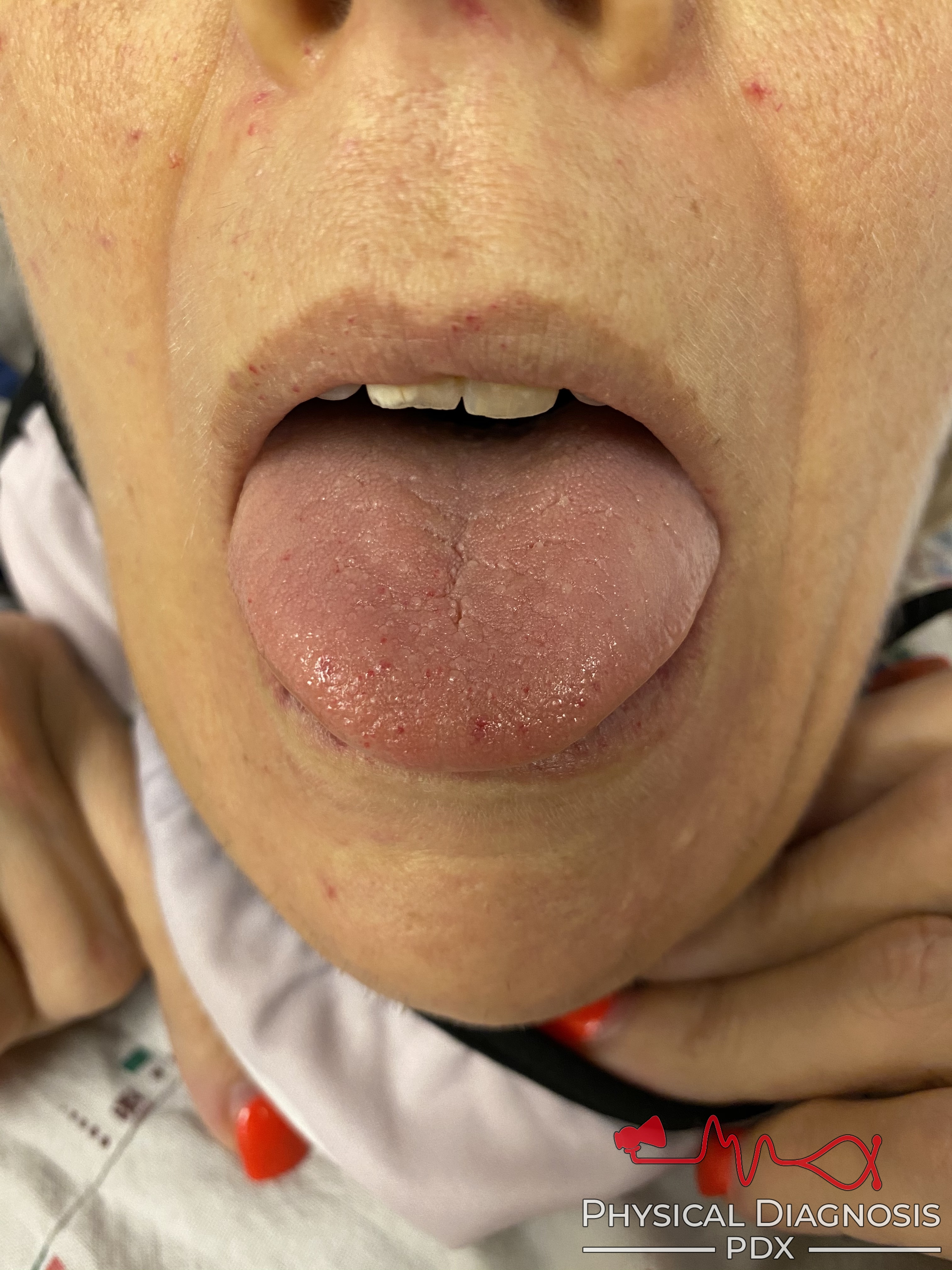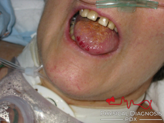 This patient demonstrates tongue findings in hereditary hemorrhagic telangiectasia