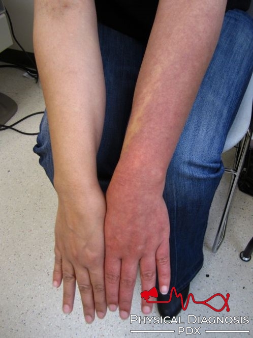 This patient is a young woman with complex regional pain syndrome with a history of left arm pain along with erythema and temperature changes on a hike. Exhaustive work up for rheumatologic or vascular etiologies was negative.